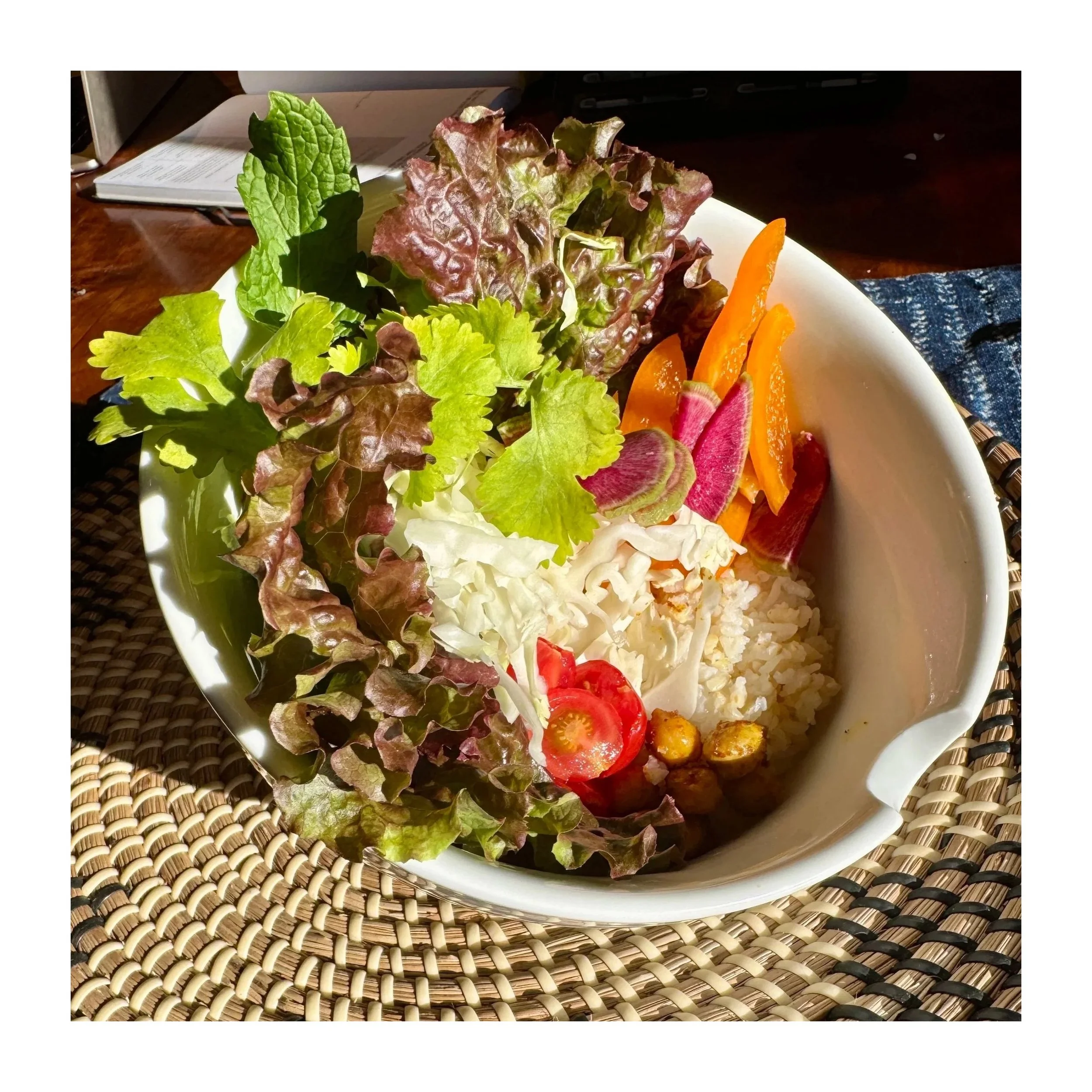 🌟 Vibrancy: Thinly sliced Cukes, julienne carrots, or very thinly sliced cabbage. These along with fresh herbs, like cilantro and mint to make it sing!